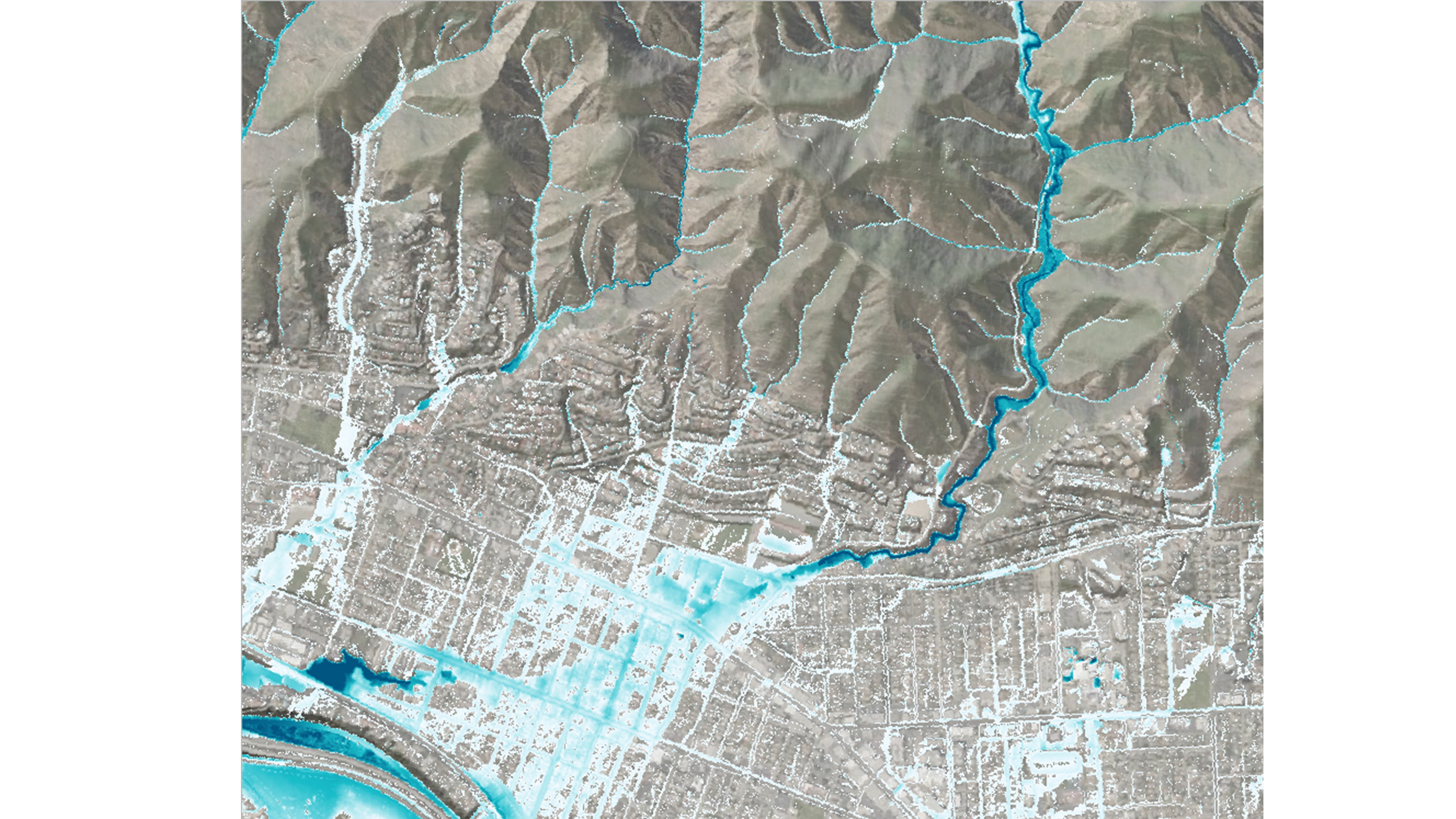 TUFLOW HPC, with its powerful Sub-Grid Sampling feature, produces accurate results for flow along narrow channels at any orientation of the structured mesh. This means there is no need to use a flexible (unstructured) mesh or alternatively an excessively high fixed grid (structured mesh) resolution to model these flow paths. This feature of TUFLOW significantly reduces model setup effort, project time and cost. Also, the ability to use a coarser resolution compared to traditional fixed grid solutions substantially reduces simulation run times.